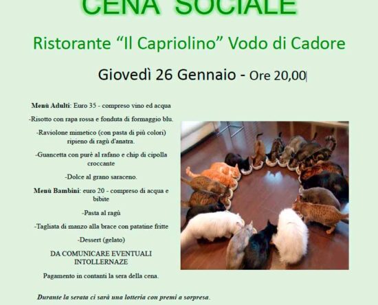 Dopo 2 anni di stop causa covid torna la cena sociale che sarà l’occasione di ripercorrere un anno intenso di attività il 2022, l’anno della ripartenza. Ristorante “Il Capriolino” Vodo di Cadore CENA APERTA A TUTTI: SOCI, FAMILIARI E SIMPATIZZANTI AS VODO asvodo@gmail.com 3477822435 (Michela) Giovedì 26 Gennaio Ore 20,00 Scarica la locandina della cena […]