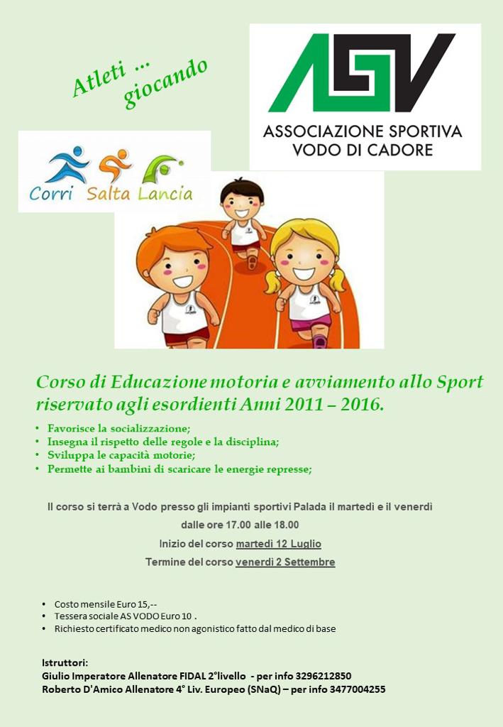 Corso di Educazione motoria e avviamento allo Sport riservato agli esordienti Anni 2011-2016: